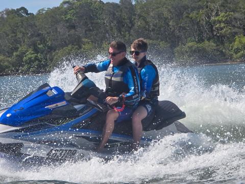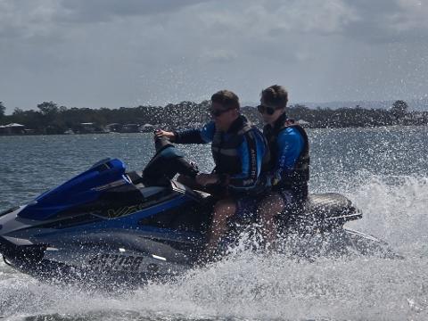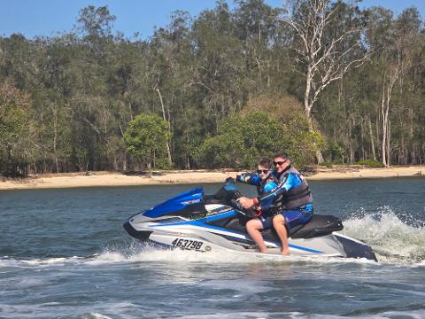 It's a four hour extravaganza - discovering the magic of Pumicestone Passage under the shadows of the Glasshouse Mountains. We combine the thrill of a jet ski ride with an adventurous eco experience winding through narrow waterways under the volcanic Glasshouse Mountains. They last erupted 25 million years ago - the only explosion you will get on this trip will be the burst of adrenaline during our Lighthouse Reach Hot Lap. We'll supply drinking water for this four hour trip and there'll be a 45 minute break in Caloundra - enough time for you to buy a coffee and a snack.